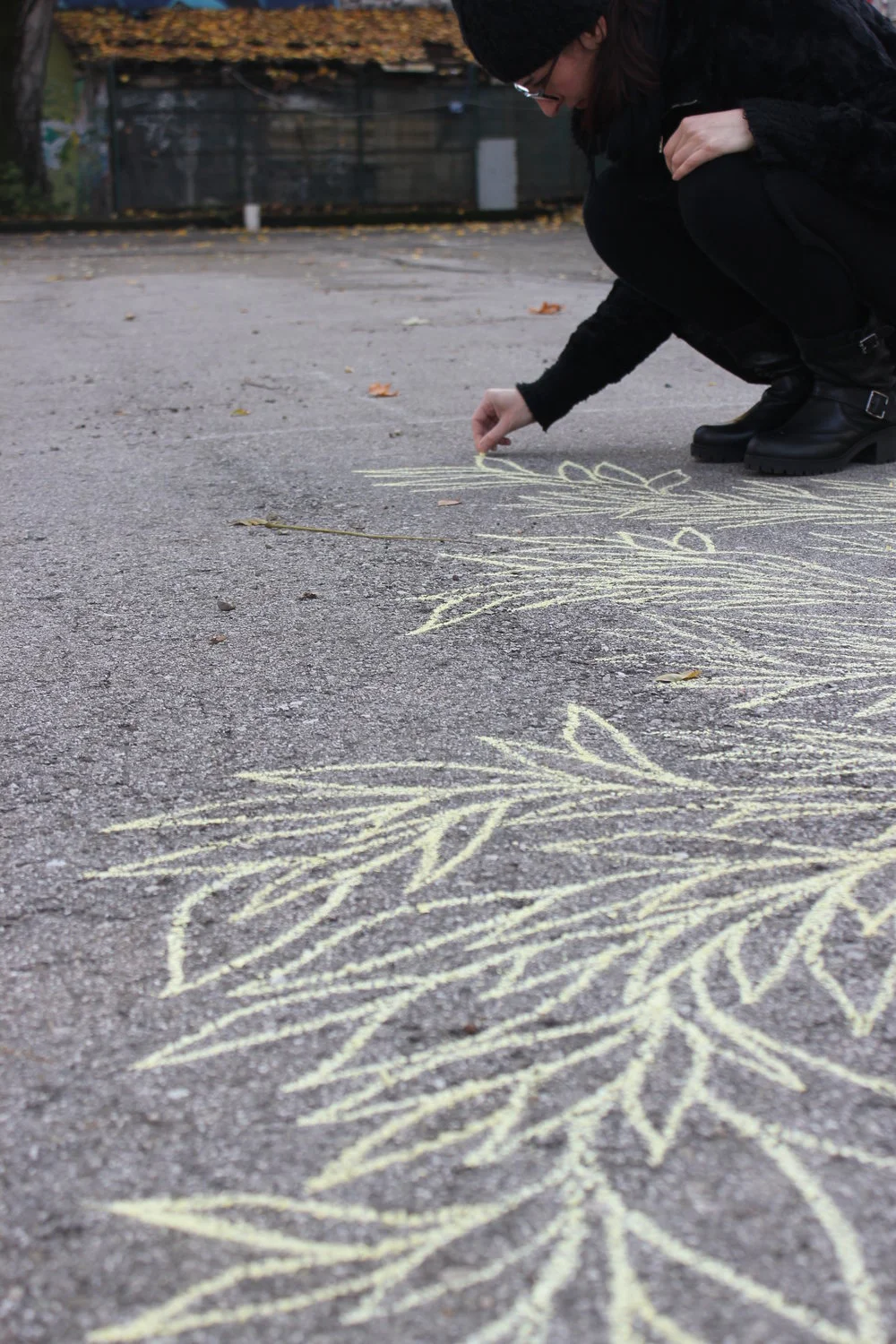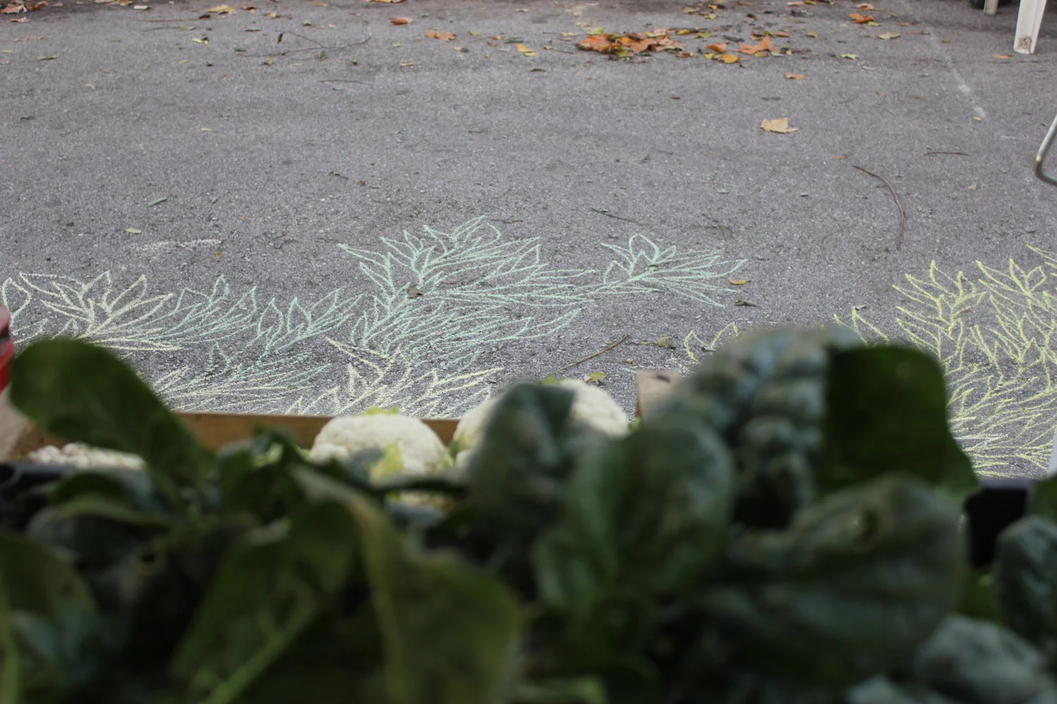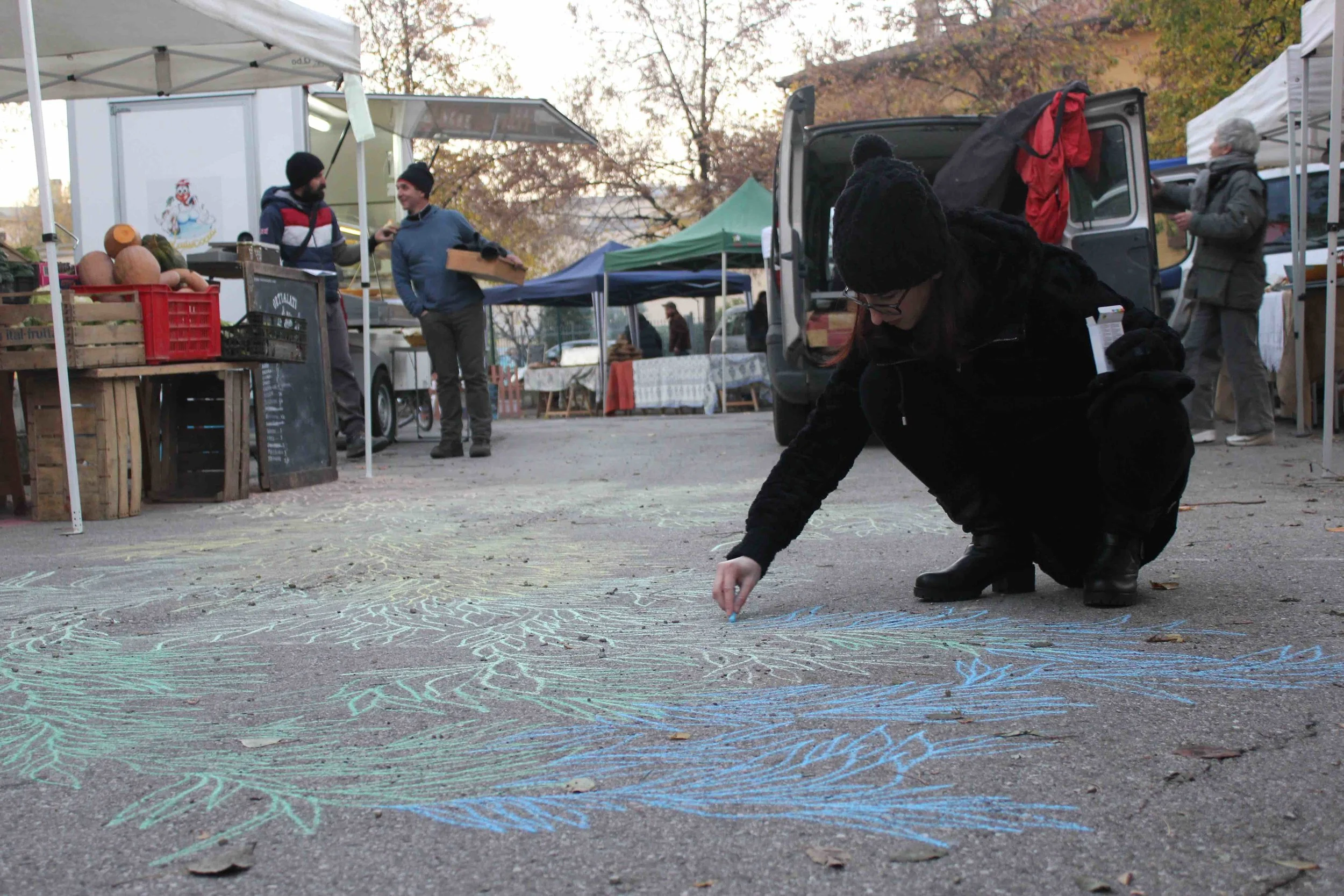 A novembre del 2016 sono stata invitata ad intervenire in un nuovo spazio chiamato Spazio Radicchio, che si trova dentro una cassetta della frutta. Ho deciso di ribaltare la cassetta e così il mio intervento è caduto sull'asfalto.